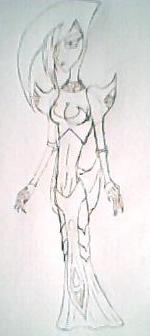This is just the sketch, no darkening of the lines or coloring yet. I made her torso too long and didn't notice until I was done sketching, oopsies... And once again the camera missed some stuff because of the light pencil marks.