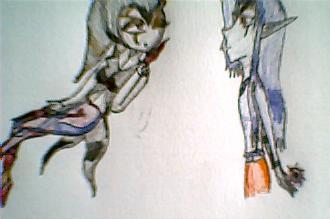 The Nightmaren is Structo, my NiGHTS OC. She will probably be in my fic in some of the people's nightmares. In the drawing; Vaati's trying to lull her into a sense of false security and then hit her with magic, but I doubt that will work.
