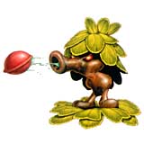 The enemy Deku Scrub, who spits nuts at Link.