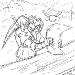 "no no you fool, the top is the other side!" anyhoo, you need to work on your proportions a bit more, link's head is way out of whack. overall, though, the style is quite nice, reminds me of HZ's style.
