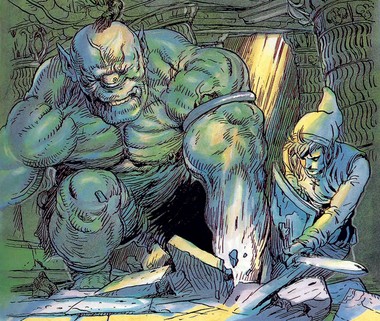 Sources: Scanned and contributed by Daniela, from the Official Link's Awakening German Player's Guide! Notes: A great image of Link fighting a Hinox. Done in the same style as the Japanese art also in the US players guides. I'm happy to see there is so much more out there.