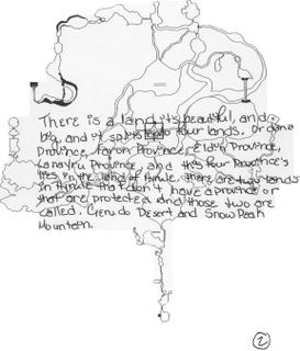 "There is a land, it's beautiful, and big, and it splits into four lands. Ordona province, Faron province, Eldin province, and Lanayru province, and these four province's lies in the land of Hyrule, there are two lands in Hyrule that don't have a province or that are protected. And those two are called, Gerudo Desert and Snowpeak Mountain."