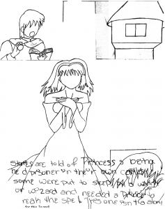 This is the newer verison and the better one, I had to use ref on the sleeping princess to Magalink's Sleeping Zelda, and the comic style as in the "Windows" I used ref to Serenitythefreakinfairy on DA. In the second panel that "ball" is suppose to be the spell the young wizard is enchanting. His hand is what I think what would look like if I was looking at him in person and if he was holding the book... Some of my writing got cut off so I had to type it out. Stupid Scanner. >>