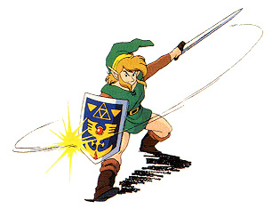Link slashing with his sword.