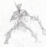 Stafolsfull.jpgStalfos807 viewsMy interpretation of a stalfos. I always thought the stalfos was a sweet baddie. I like to think of a stalfos as more of a spirit or demon, that posesses the bones and courpses of the dead. Because the stafols would require the bones, limbs and weapons only for battle, It could assemble itesf from a variety of things, in a variety of shapes (someimes even adding extra limbs if need be). The only way to kill it would be to cut off its head and smash the skull, where the spirit resides in the body. Merely taking a limb off, while effective, would not keep the stalfos off for long, for it could regenerate itself with the same bones, or different bones altogether. This pic originally had three arms, to show of its abilities, but I felt it looked to corny in the pose he was in, so I lopped it off for now.Braxis