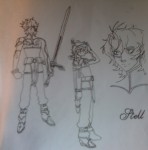 Yup, she no longer is that little and cute demon we see in TP trailers, now she's a Veerial and she still has her scarf/hand thing, minus helmet. Helmet too hard for teh Dan to draw T^T As you can guess for the drawing, she isn't much of a fighter herself, but a magic user.