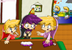 Here, Shadow's got a little plushie of himself from Red X3 And Blue has burned the cake in the kitchen!