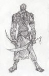 Ganondorf.jpgThe Prince of Thieves889 viewsMy version of Ganondorf. This is what I feel ganondorf looked like in the child portion of OOT. I felt that his orginal design, while being awesome, did not suit someone that lived and trived in the desert. So I changed all that. He now wears more cloth then armor. I gave him a scarf to wrap around his face during wind storms in the desert, and for raids or something. His body has many scars over it from his battles. Im not sure why he is wearing sandles, but they give him a better desert appreance (or at least I think so). I also gave him middle eastern themed weapons, that he could hack and thrust with. I also gave him a waterskin, because no matter how strong you are, the desert will consume you if you dont have water. Overall I think this design came out well. You should expect the a new link really soon!Braxis