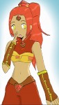 You know, I'm tired of Nayru always being the meek and quiet sister of the three, that's why mine is a flirt!! XD Farore isn't a little girl, she's a girl ready for adventures and ass kicking any day of the week!! And Din is our lovely, smexy and quiet girl who always get mad with her sisters ^^
