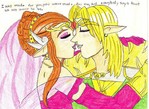 LinkMalonKiss.jpgGit 'er Cowboy!852 viewsHmmm, I wonder if Zelda's psychic connection to Link saw this coming...:) Yeah, that's Link and Malon about to share an intimate kiss...I felt so bad about the last pic where Zelda disses Link, that I had to give him a little retribution...haha Zelda doesnt look too happy....:) Pencil sketch, photoshop....Girlink