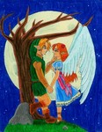 i painted this today because I was bored out of my mind and sick of doing all my art with the computer. i've wanted to do Link's head at this angle for quite some time. i think it makes him look so sleek. i've been on a link/marin kick latley. in this painting, i didn't want either of their eyes to be showing, it should be more impressionistic. i am quite fond of this, especially Marin's hair. I didn't use any references so please don't harass me about clothing. I wanted to draw Link with all his clothes on, but i was having a horrible time with his shirt, so i decided to leave it out. He is supposed to be in those little white tights he wears, having just finished a swim. yes, i know he doesn't wear them in LA and his hair is different... deal with it. XPcerasly