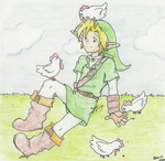 Chickens_on_Break.pngCuccos!569 viewsLink...being attacked by a horde of cuccos!! Look, one is even trying to eat his hand. Poor, poor Link.
